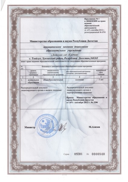 Свидетельство о государственной аккредитации